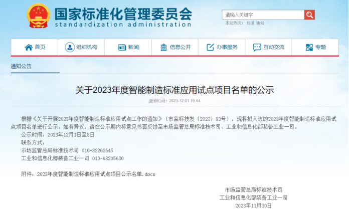 ? ? ? ?11月30日,國家市場監(jiān)管總局標(biāo)準(zhǔn)技術(shù)司、工業(yè)和信息化部裝備工業(yè)一司公告發(fā)布“關(guān)于2023年度智能制造標(biāo)準(zhǔn)應(yīng)用試點(diǎn)項(xiàng)目名單”的公示,青島嶗山礦泉水有限公司和華高數(shù)字科技有限公司聯(lián)合申報的“瓶(罐)裝飲用水智能工廠標(biāo)準(zhǔn)應(yīng)用試點(diǎn)”榮耀上榜!